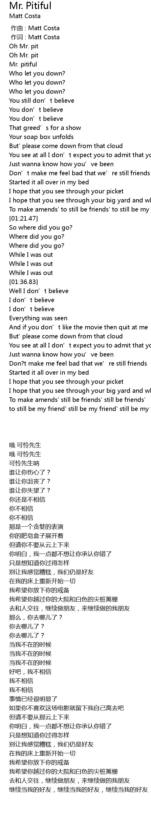 | [00:01.00] | 作词 : Matt Costa |