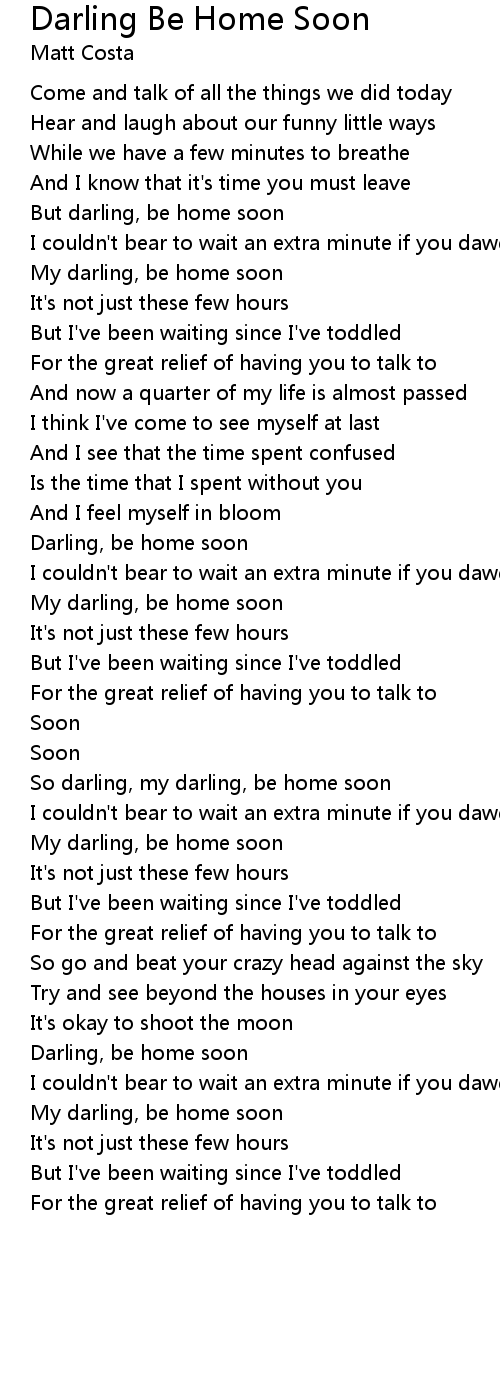 My darling, be home soon |