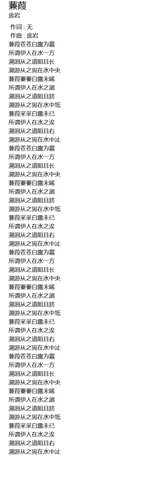 | [00:07.733] | 蒹葭苍苍白露为霜 |