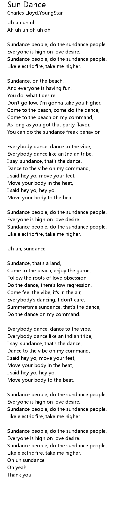 | Summertime sundance, that's the dance, | |