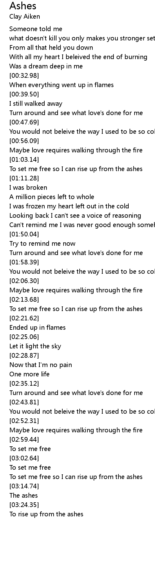 To set me free so I can rise up from the ashes |