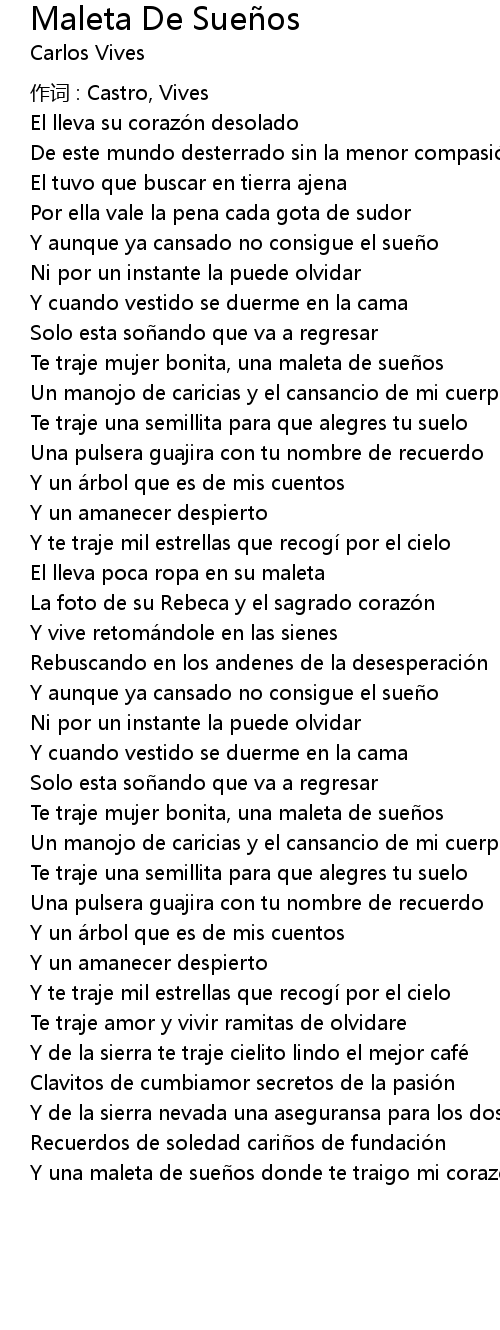 | Y una maleta de sue os donde te traigo mi corazo n |