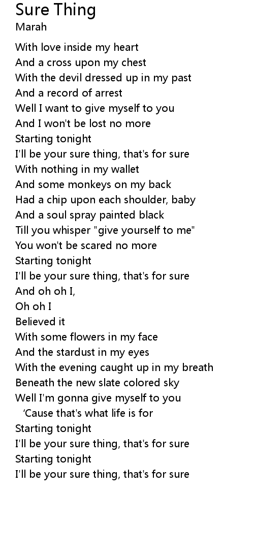 | I' ll be your sure thing, that' s for sure | |