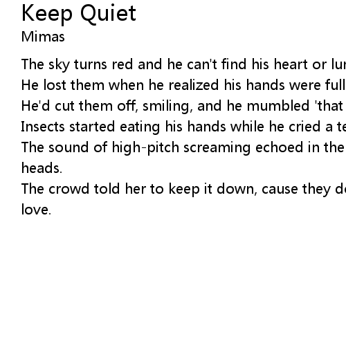 | The crowd told her to keep it down, cause they don't care what happened to her love. |