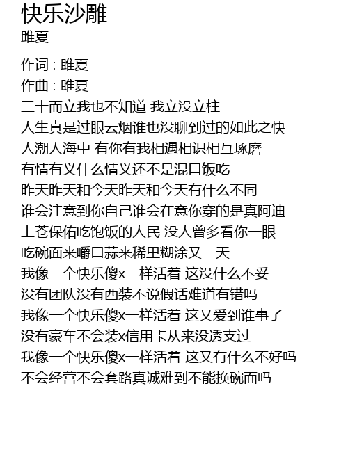 | wǒ xiàng yí gè kuài lè shǎ x yí yàng huó zhe zhè méi shén me bù tuǒ | |