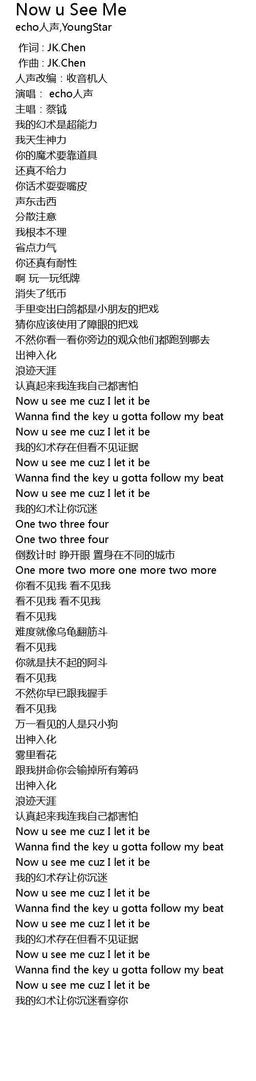 | [01:16.401] | kàn bú jiàn wǒ kàn bú jiàn wǒ |