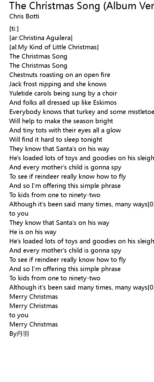 | [00:30.00] | Chestnuts roasting on an open fire |
