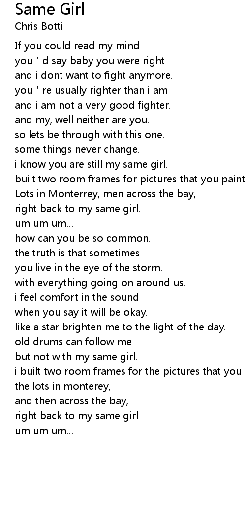 | i know you are still my same girl. | |