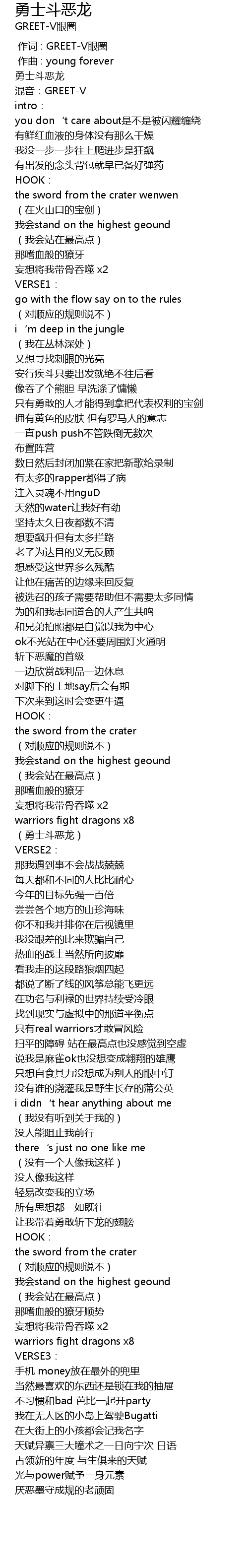| [00:00.000] | 作词 : GREET-V眼圈 |