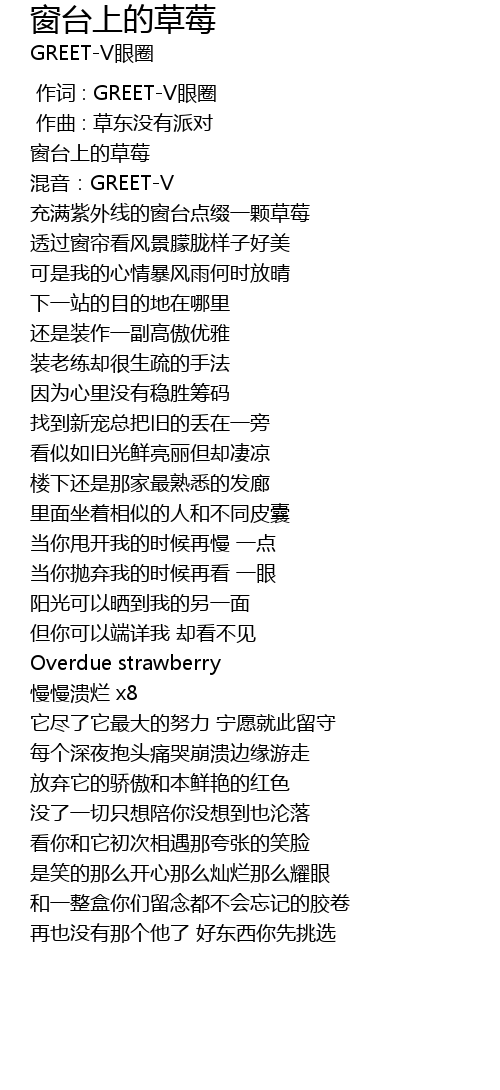 | [00:00.000] | 作词 : GREET-V眼圈 |