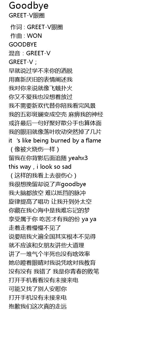 | [00:00.000] | 作词 : GREET-V眼圈 |