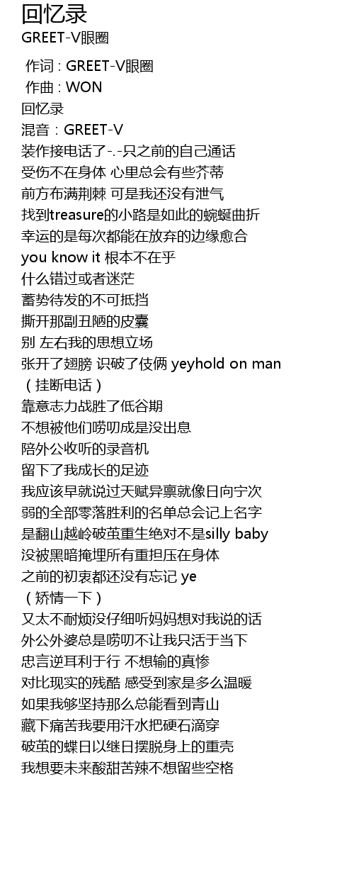| [00:00.000] | 作词 : GREET-V眼圈 |