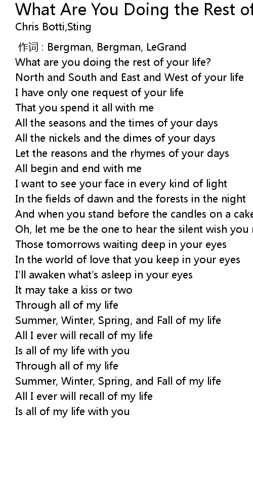| Song | What Are You Doing the Rest of Your Life? (Album Version) |