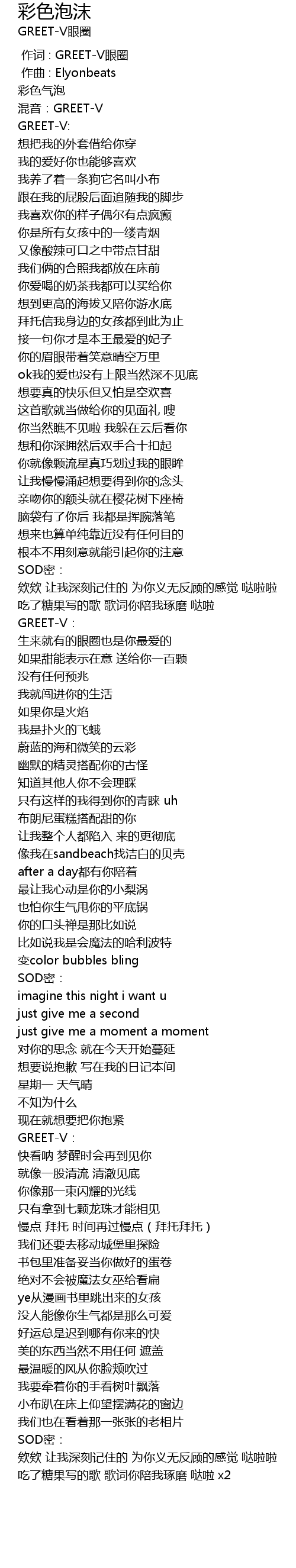 | [00:00.000] | 作词 : GREET-V眼圈 |