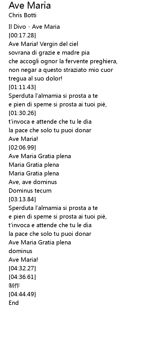| [03:52.11] | Ave Maria Gratia plena |