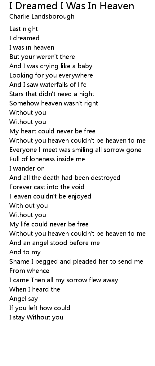 Without you heaven couldn't be heaven to me |