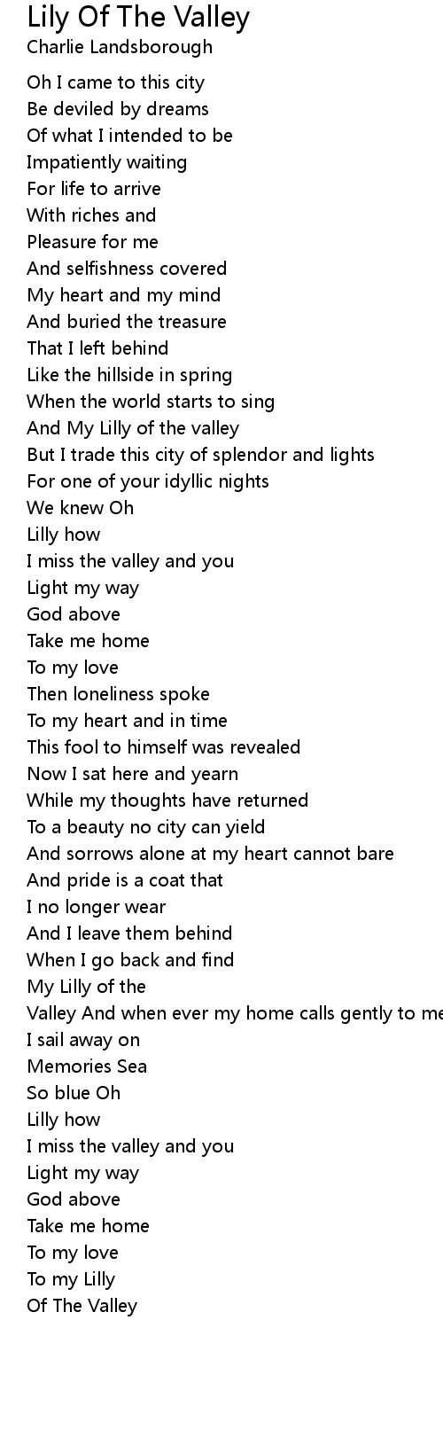 And My Lilly of the valley |