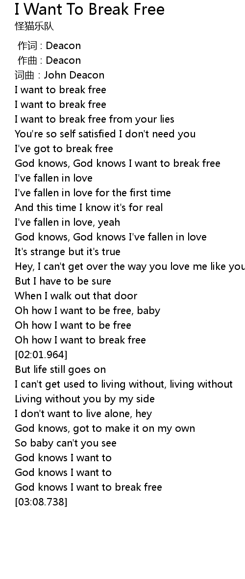 | [03:00.687] | God knows I want to break free |