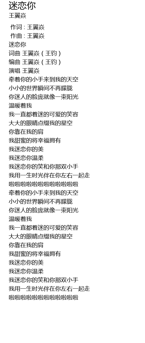 | [00:04.92] | 词曲 王翼焱(王钧) |