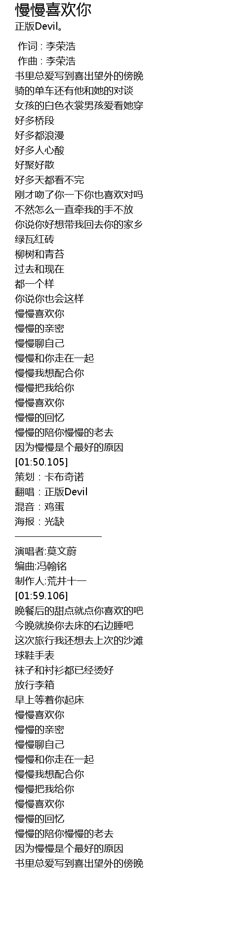 | [01:14.934] | màn màn xǐ huān nǐ |