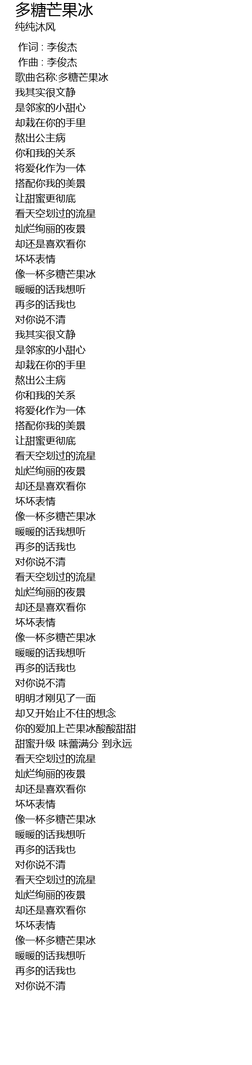 | [00:13.197] | 歌曲名称:多糖芒果冰 |