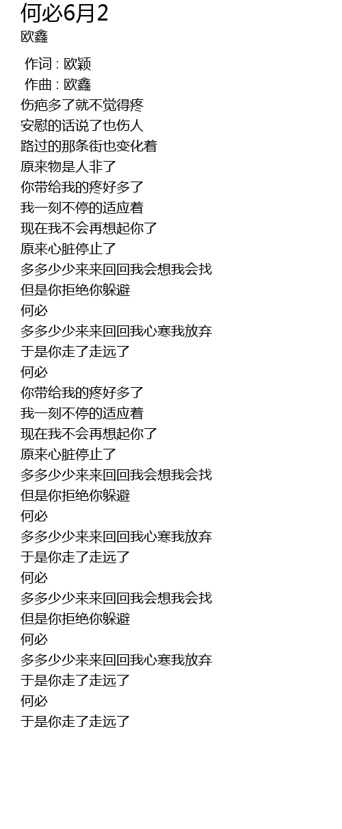 | [00:01.000] | 作曲 : 欧鑫 |