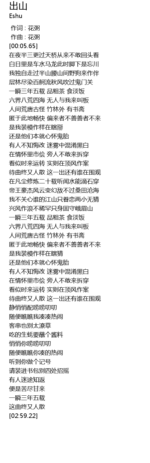 | [01:35.30] | 一瞬三年五载 品粗茶 食淡饭 |