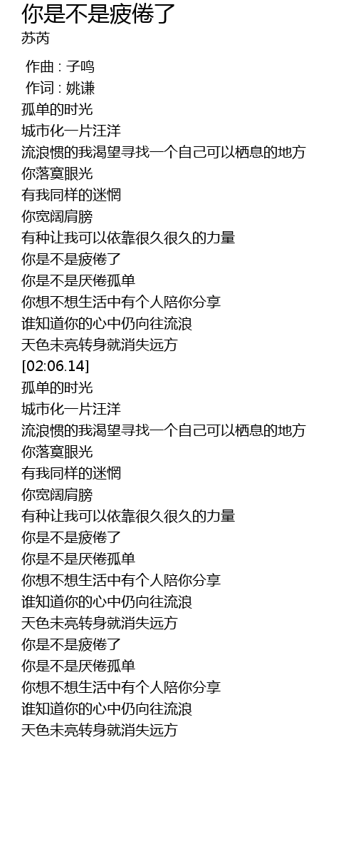 | [03:07.26] | 你是不是疲倦了 |