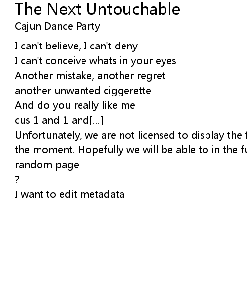 | Unfortunately, we are not licensed to display the full lyrics for this song at the moment. Hopefully we will be able to in the future. Until then, how about a | |