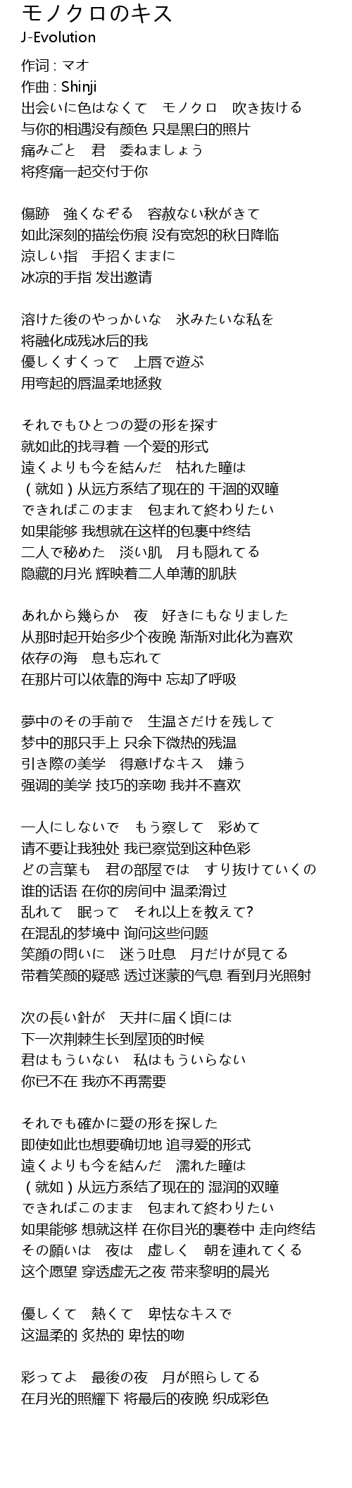 | Song | モノクロのキス |