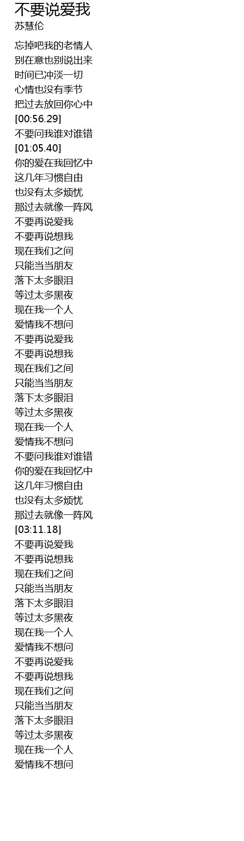 | [01:32.42] | bú yào zài shuō ài wǒ |