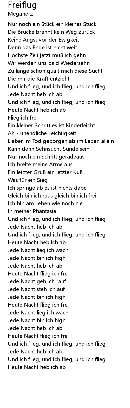 | Und ich flieg, und ich flieg, und ich flieg | |