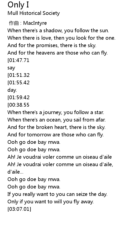 | [02:05.05] | Ah! Je voudrai voler comme un oiseau d' aile |