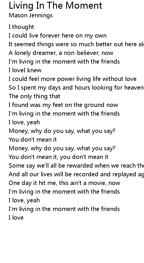 I'm living in the moment with the friends |
