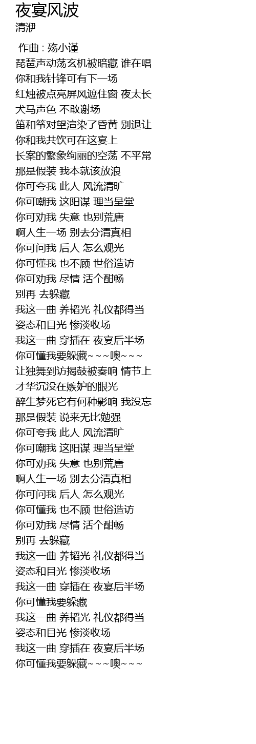 | [02:45.764] | 我这一曲 穿插在 夜宴后半场 |