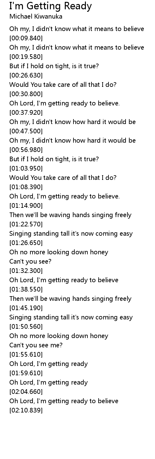 | [01:56.420] | Oh Lord, I' m getting ready |