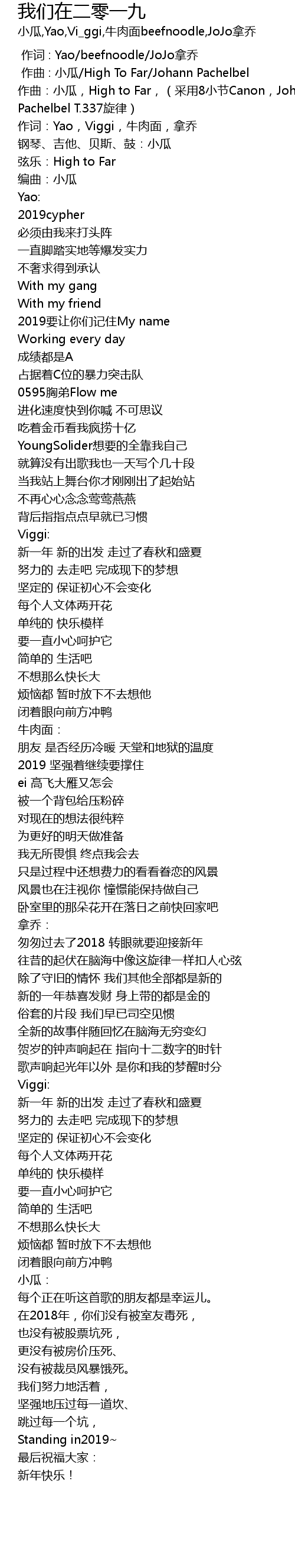 | [00:40.080] | 2019 yào ràng nǐ men jì zhù My name |