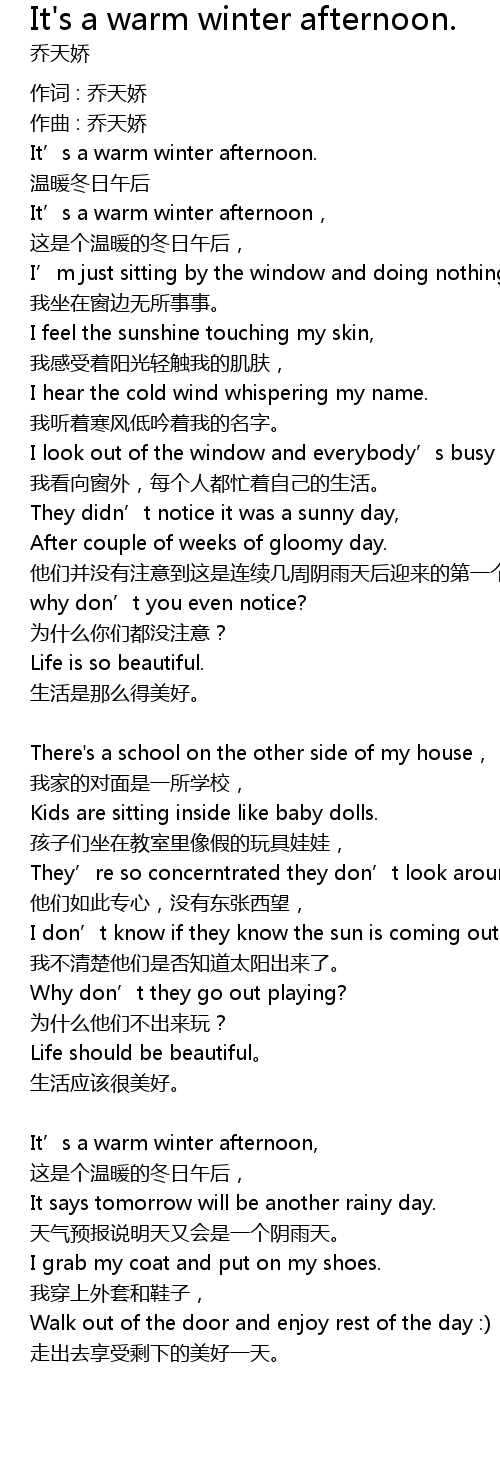 | zhè shì gè wēn nuǎn de dōng rì wǔ hòu, | |