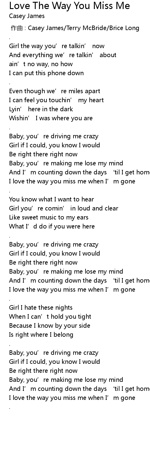 | [01:57.65] | I love the way you miss me when I’m gone |