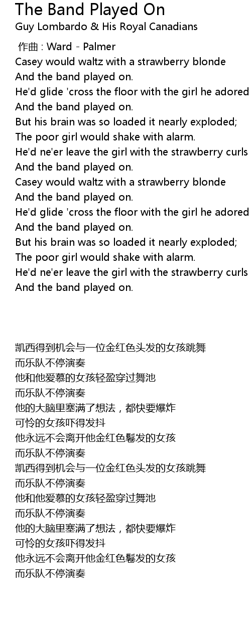 | [00:45.41] | Casey would waltz with a strawberry blonde |