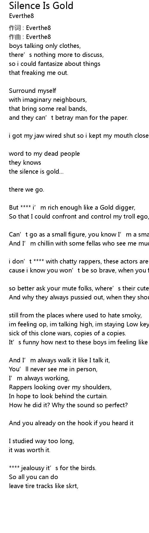 | Song | Silence Is Gold |