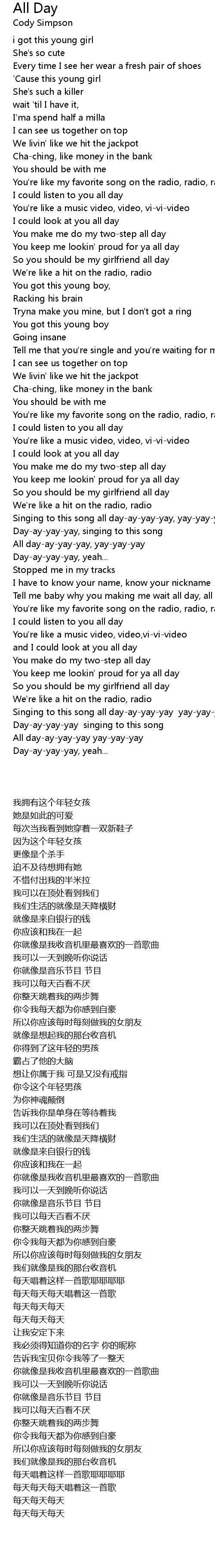 Singing to this song all day-ay-yay-yay, yay-yay-yay |