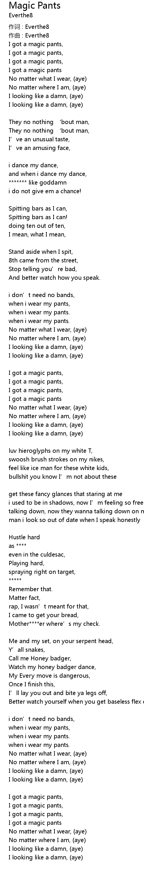 | I got a magic pants, | |