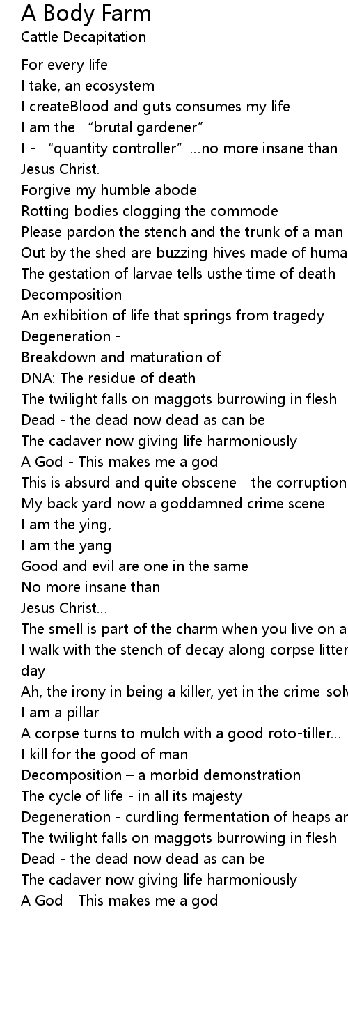 | I walk with the stench of decay along corpse littered paths at the break of the day | |