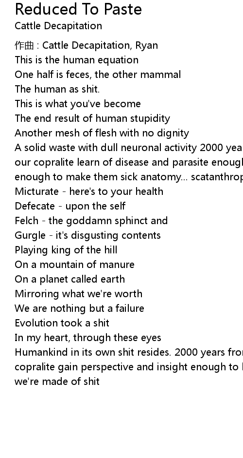 | Song | Reduced To Paste |