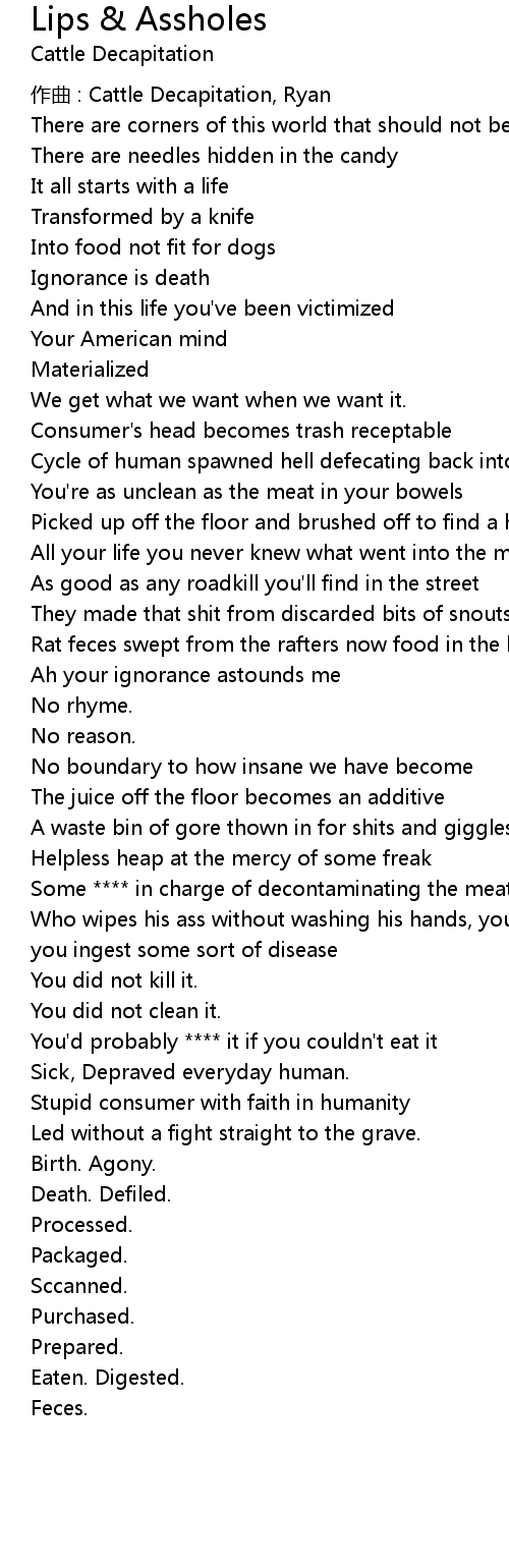 | zuò qǔ : Cattle Decapitation, Ryan | |