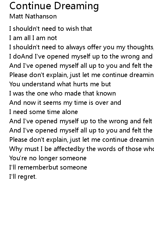 Continue Dreaming Lyrics