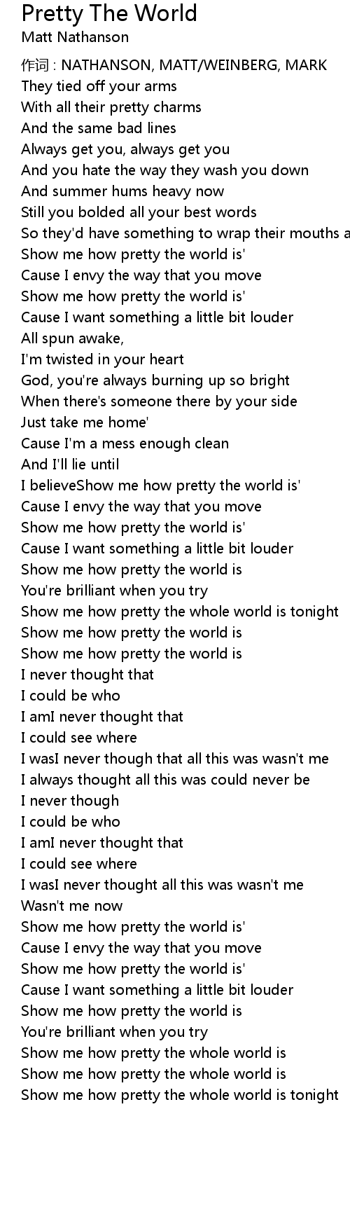 | I believeShow me how pretty the world is' | |