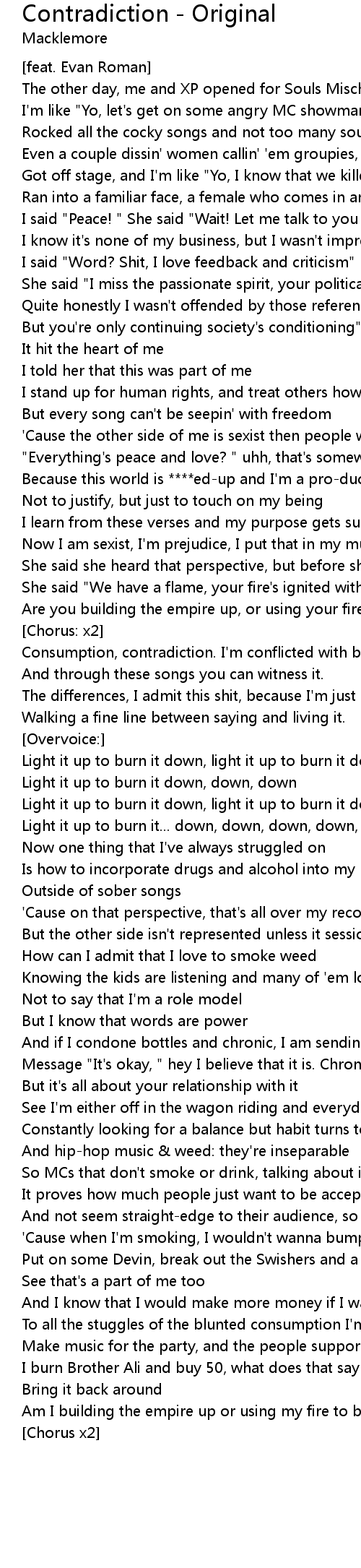 Consumption, contradiction. I'm conflicted with being a hypocrite, |
