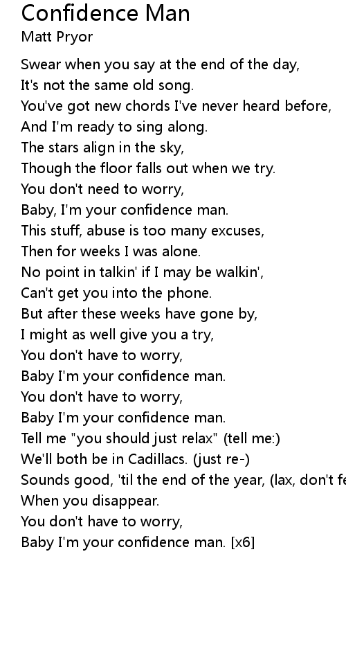 Baby I'm your confidence man. [x6] |